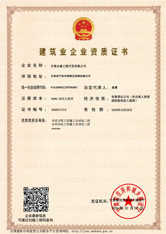 2024-12-05近日,產(chǎn)投集團下屬企業(yè)水建公司申請的市政資質已順利獲得許可。市政資質許可是衡量企業(yè)在市政工程領域綜合實力的重要標準,涵蓋城市道路、橋梁、排水、照明等多個領域。水建公司具備承接各類市政工程項目的資格,且在企業(yè)資產(chǎn)、專業(yè)技術人員、技術裝備以及工程業(yè)績等方