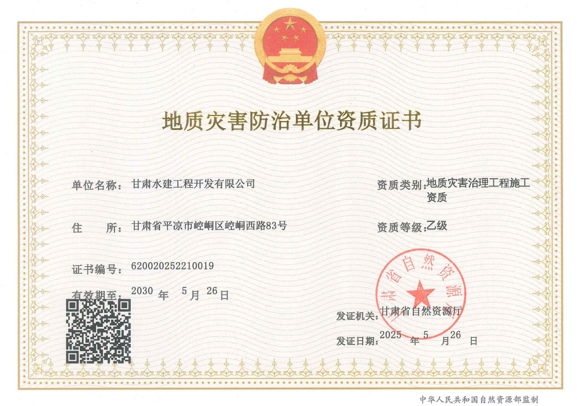 市產(chǎn)投集團(tuán)水建公司成功取得地質(zhì)災(zāi)害治理工程施工資質(zhì)